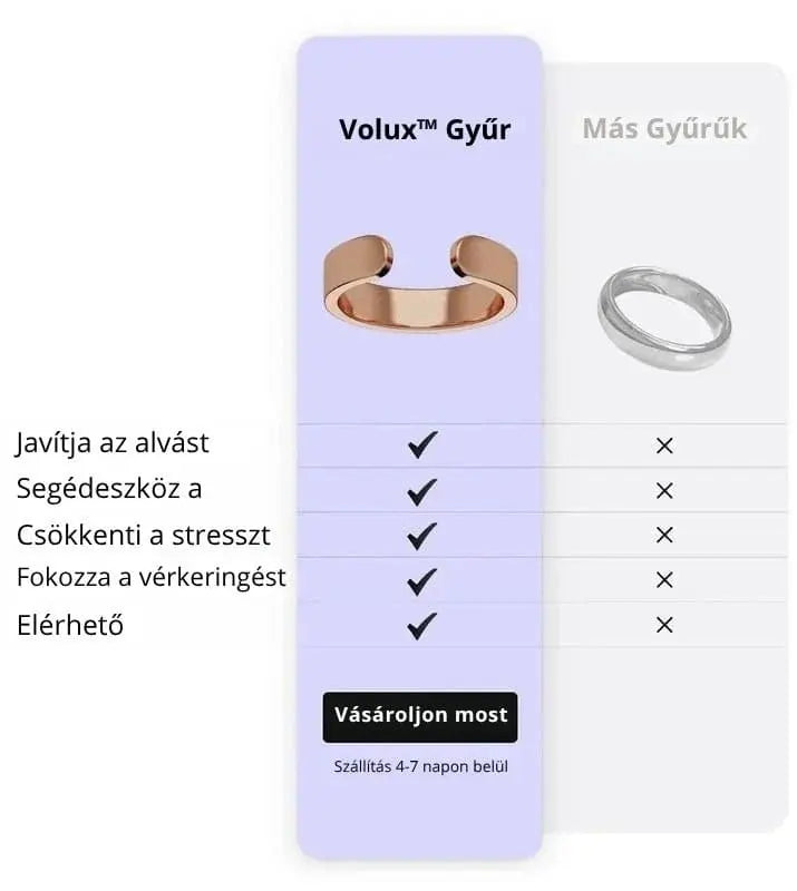 Az eredeti Volux™ Egészség Gyűrű kizárólag a hivatalos weboldalunkon kapható. Vigyázzon a csalásokkal az Amazonon, az eBayern vagy más hasonló platformokon. Az autentikus élmény érdekében vásároljon közvetlenül a hivatalos oldalunkról.